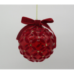 SFERA NATALIZIA GLITTER ORO E FIOCCHETTO IN VELLUTO ROSSO