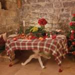 TOVAGLIA TINTO FILO TARTAN FONDO ROSSO CON NAPPE